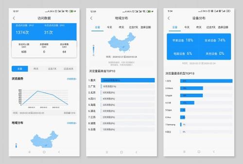 通过对H5平台大数据分析,我们可以看到疫情防控宣传效果非常显著。一是时效性强,传播速度快,在短时间内集中进行大面积的信息推送,迅速形成宣传爆发力,在22日上线后7个小时内,浏览量达到755次,总浏览人数334人,总分享数46次;二是范围广,精准度高,在不同地区的不同人群之间进行信息推送,迅速提高宣传辐射力;截至23日24时,重庆地区浏览量1297次,广东地区浏览量10次,北京地区浏览量5次,四川地区浏览量4次,湖北,海南地区浏览量3次,江苏、湖南地区浏览量2次,云南地区浏览量1次,其中,移动设备端浏览量达到92%,PC端浏览量达到6%。