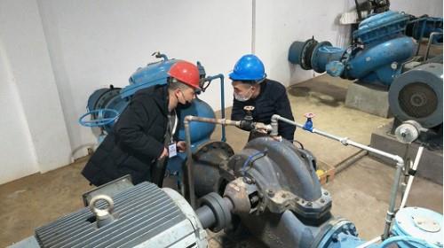 (图:郎溪县供水工作人员对调水机组进行巡检)