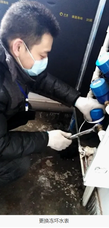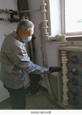 在疫情期间要保持室内适当的通风,而有些居民为达到通风的目的,长时间甚至整宿不关闭单元门窗,导致一些楼道供水管冻裂、水表冻坏,楼道漏水时有发生。水表检定站的维修人员不分日夜,接到热线工单或居民打来的电话,就立即赶到现场,协助用户对被冻的水管进行解冻,对冻坏的管线和水表进行维修和更换。有时都顾不上衣服被水浇湿、冻冰,甚至顾不上吃饭饭饿着肚子进行抢修,一心只想能早点修复,为居民供上自来水。