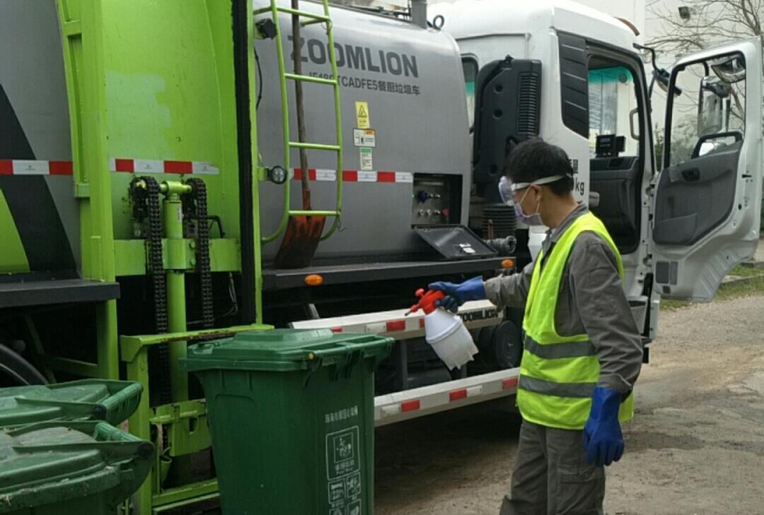 每一次出车前后,都要按照公司应急预案对一线工人和收运车辆进行严格的全方位消毒
