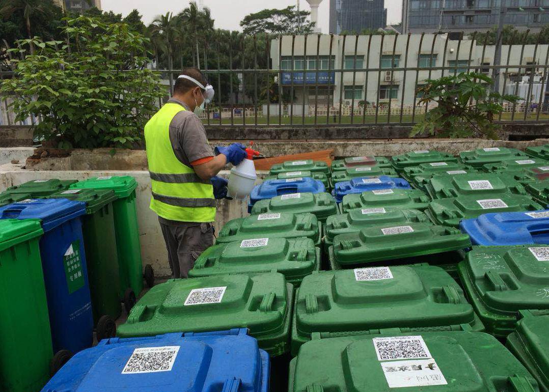 为了保证安全生产,他们多加了一道工序:在到每一个收运点收运垃圾之前,用消毒水对垃圾桶和周围进行喷洒消毒,特别是最直接接触的垃圾桶把手处。“我们不想遗漏任何一个环节的消毒工作,绝不让病毒有机可乘”,傅战说。