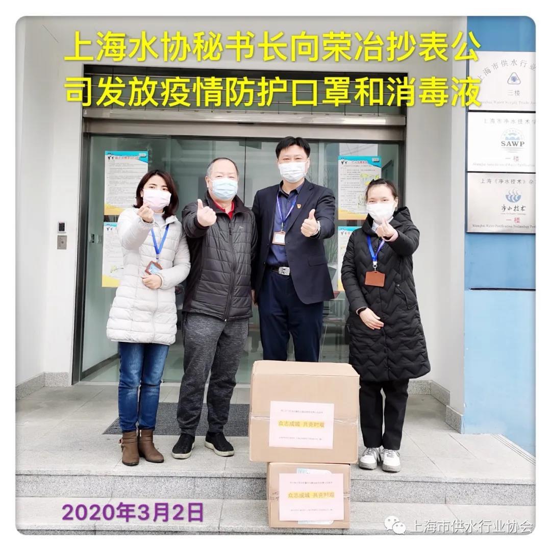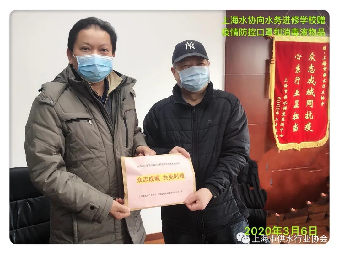 随着供水行业会员单位进入分期分批复工复产阶段以来,自2020年 2月下旬开始,上海市供水行业协会对全行业在疫情发生后坚持上班的供水企业和陆续复工的生产企业进行了防疫防控走访。当了解到部分单位由于防疫用品紧缺时,水协迅速组织防疫物品的采购工作并接受了会员单位上海江桥建筑工程有限公司捐赠的一批消毒液。