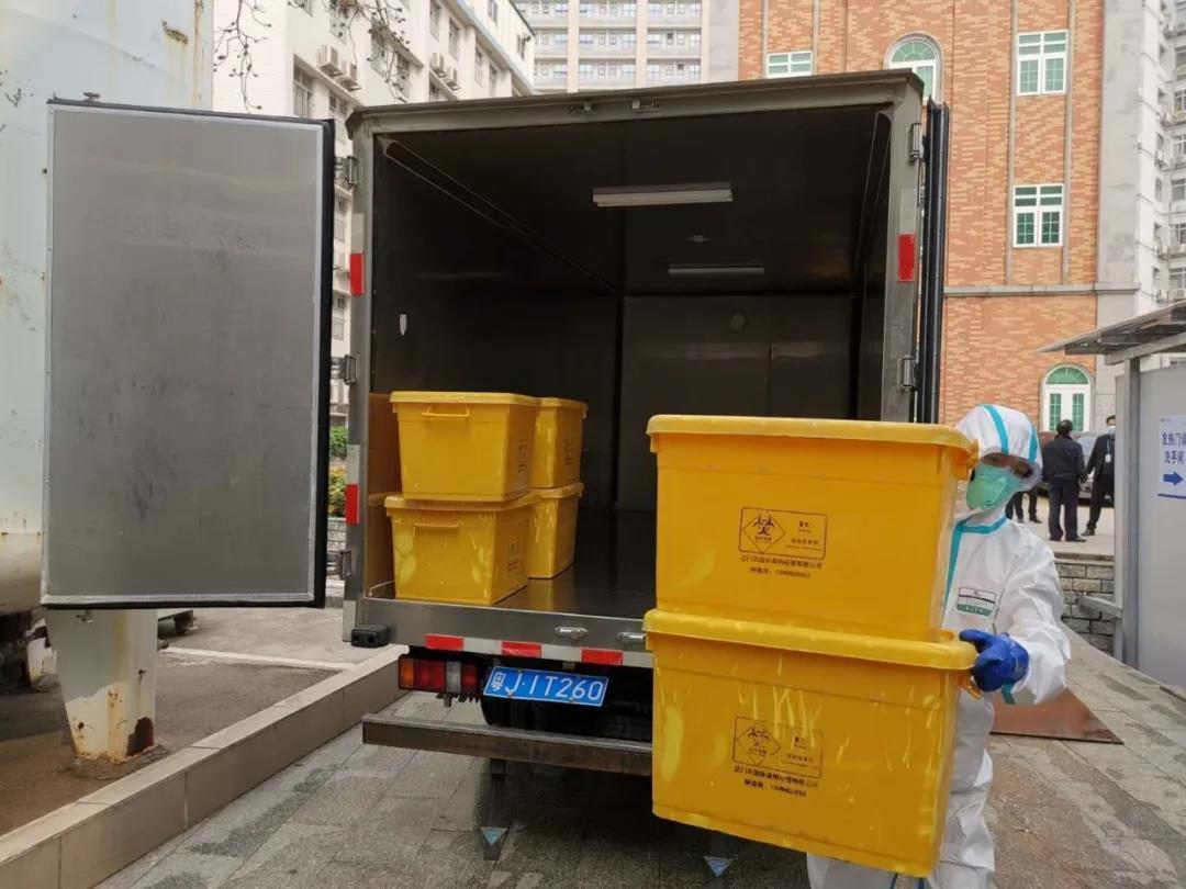 目前,根据江门市确诊病例和疑似病例的个案数和定点诊治医疗机构数量,卫生物料处置厂收运人员每天均需前往新冠肺炎定点诊治医院、集中隔离场所等区域收运新冠病毒医疗废物及相关人员产生的生活垃圾,繁重的工作任务和压力使该厂面临严峻的考验。在困难面前,该厂党员干部和一线工人主动放弃休假,坚守岗位投入防控一线,以高标准、严要求认真落实医疗废物收集、运输、处置的每一个环节,确保医疗废物无害化处理率达100%,为保障市民群众身体健康和生命安全坚决守卫好“最后一道防线”。