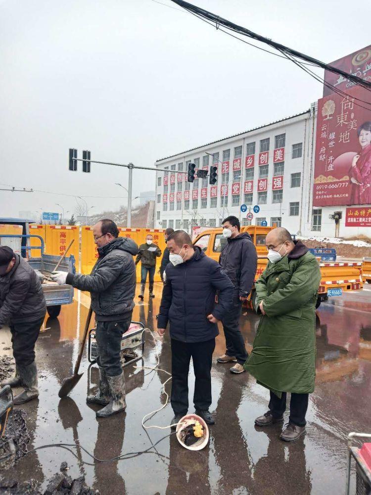 2、锦华街修漏,天气寒冷,任务艰巨,劳动强度大,非常时期,维修人员逆向而行、迎难而上,管网不通水,我们不撤退。我们以踏实肯干,敢打硬拼的工作作风守护着城市供水的“生命线”,以自己的实际行动践行着供水人的初心与使命。