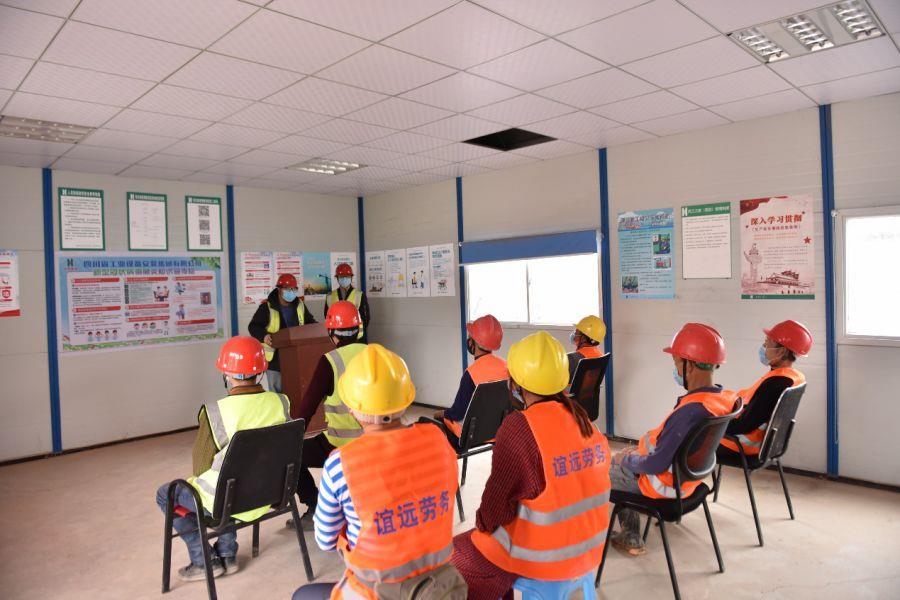 项目工地采取全封闭管理,设一个出入口,严格落实出入口门岗值班登记、测温制度,并逐一做好记录;设置隔离观察点对外地返蓉人员采取隔离观察;所有人员实行错峰分区用餐,保证人员健康。