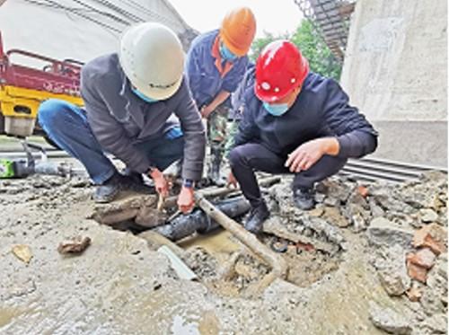 经过一段时间的仔细排查,彭立在食品厂家属院尾端发现了DN110mm的PE管道破裂点。“找到问题了,大家马上动起来!”在他的带领下,工作人员马上投入到紧张的抢修工作中。在关闭总水阀、清理完积水以后,彭立发现,该处地下空间狭小,施工难度较大,但工作人员克服了种种困难,迅速备齐材料,连午饭都没顾得上吃,挖开地面就迅速抢修。经过5个小时的连续奋战,当天该区域的供水故障就得到了全面排除。