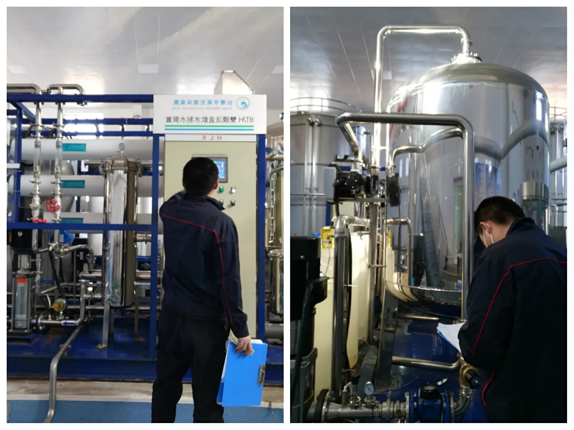 直饮水二干水厂值班人员进行每日自检和厂区内外清洁消杀工作,详细记录水表读数和TDS值。操作制水系统,检查设备运行情况。