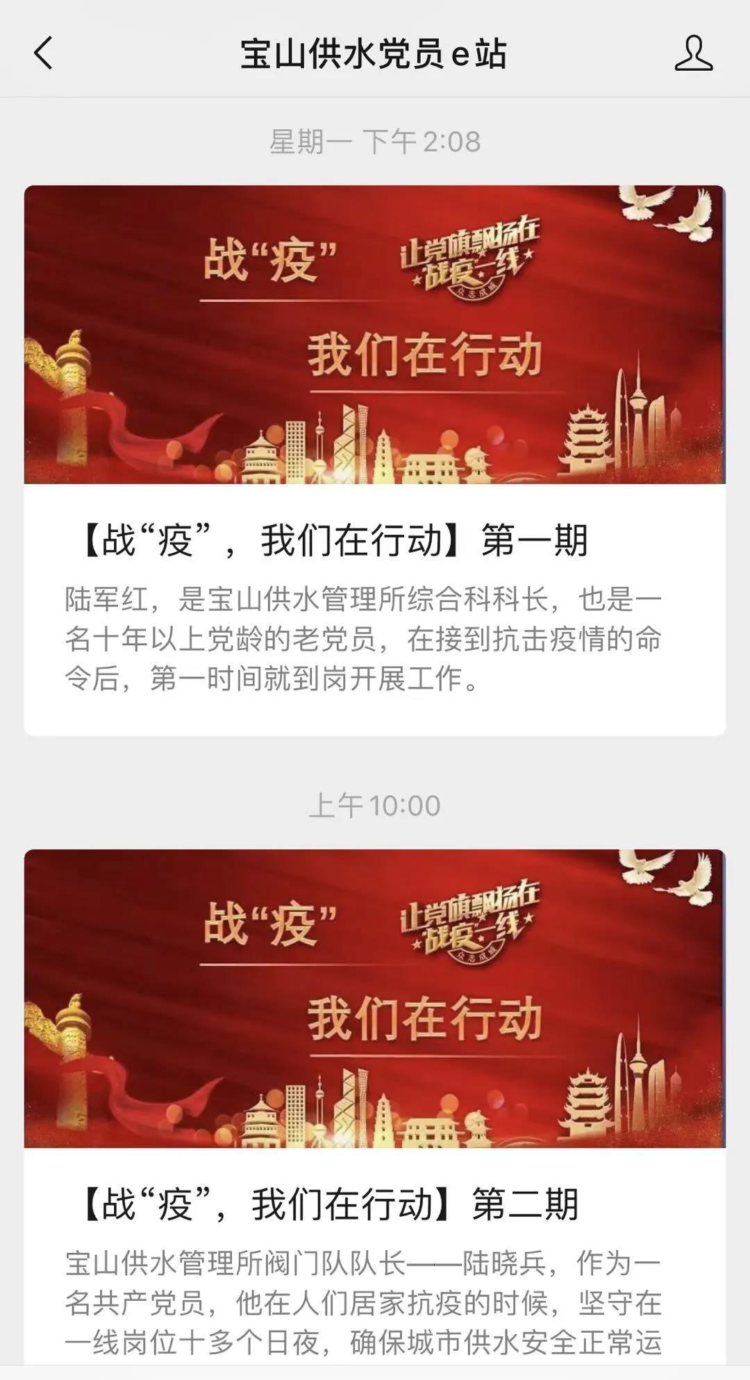 当前正处于疫情防控的关键时期,为了进一步发挥党组织的战斗堡垒作用和党员先锋模范作用,强化党员在战“疫”中的责任意识,宝山供水管理所党支部按照上级党委统一部署,将主题党日和疫情防控结合起来,充分利用线上平台的创新形式,开展“学总书记讲话精神、学前方‘战士’感人事迹、学身边先进典型”主题党日,引导广大党员把投身防控疫情第一线、保障城市供水生命线,作为践行初心使命、体现责任担当的试金石和磨刀石。