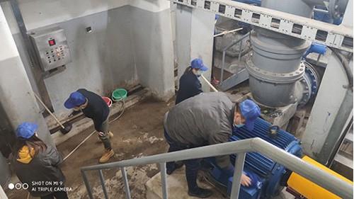 在生产一线奋斗。北河口水厂 “蓝帽子”青年服务队,对老厂混水机房的机组设备及机室卫生进行清洁,所到之处确保干净利落,为水厂设备的平稳运行及环境整洁贡献青年力量。