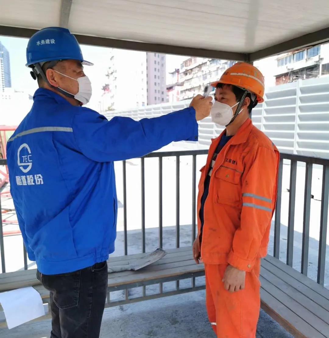 管道工程公司承建的武宁路快速通道自来水搬迁工程(兰溪路-杨柳青路)是市重点工程武宁路快速通道的相关配套工程。该工程完工后能有效缓解普陀区东西向交通压力。为了保证工程按期完成,分公司项管二部积极加快疫情期间的工程复工。张鸿林是项管二部经理,也是武宁路项目一线防疫指导员。从复工准备阶段开始,他就着手做好体温枪、口罩、防护服、消毒水等防疫物资的储备,同时对分包队伍人员的身体状况进行全面摸底排查工作。防疫复工冲锋号吹响后,测体温、发放防疫物品、叮嘱定时消毒,现场时时都有他忙碌的身影,在他的带领下,项目部全员上下勠力同心,工程防疫工作严格落实,施工有序开展。