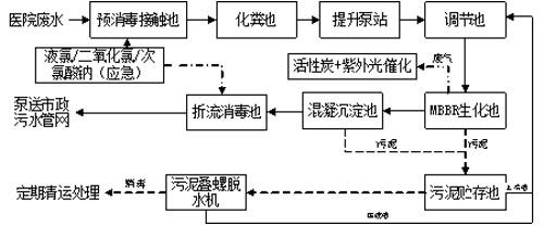 火神山、雷神山医院,是为集中收治新型冠状病毒肺炎COVID-19患者而设立的专科传染病医院,日平均污水量分别为800及1200立方米,采用“预消毒接触池+化粪池+提升泵站(含粉碎格栅)+调节池+MBBR生化池+混凝沉淀池+接触消毒池”处理工艺。污水站地基下方均按垃圾填埋场标准铺设防渗膜,雨水全收集汇入雨水调蓄池后进行消毒处理排放,保证污水、雨水100%收集处理。在污水处理工艺选择方面,项目设计团队在参考北京小汤山医院设计思路的同时,在以下方面进行了技术创新和探索: