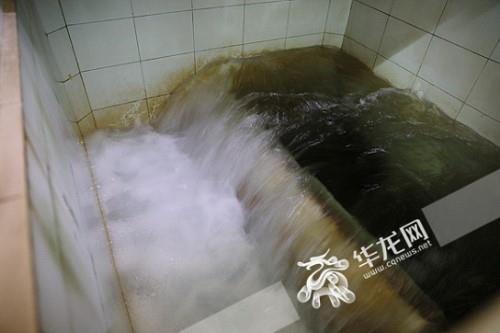 平流沉淀池沉淀区,凝固后的颗粒物肉眼可查。 华龙网-新重庆客户端记者 李裕锟 摄