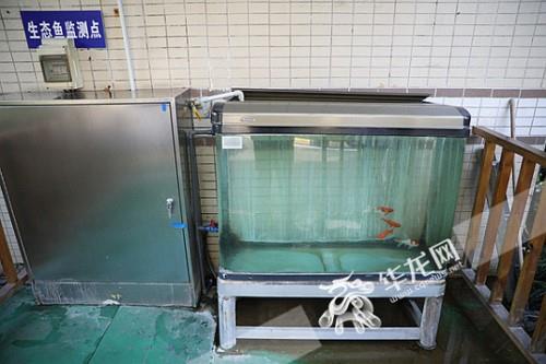 水如何送出?实时监测加氯消毒水从V型滤池中经过过滤后,便流向厂区内的清水池,进行加氯消毒,最终便成为合格的自来水了。华龙网-新重庆客户端记者在清水池外还看到,一个透明的玻璃缸中养着几尾金色的小鱼。这是干嘛的呢?原来这是生态鱼观测点,水经过第一次的沉淀之后,就要靠这些小鱼来检测水质是否合格,如果小鱼不能在这样的水里生存的话,就意味着水质还未达标。