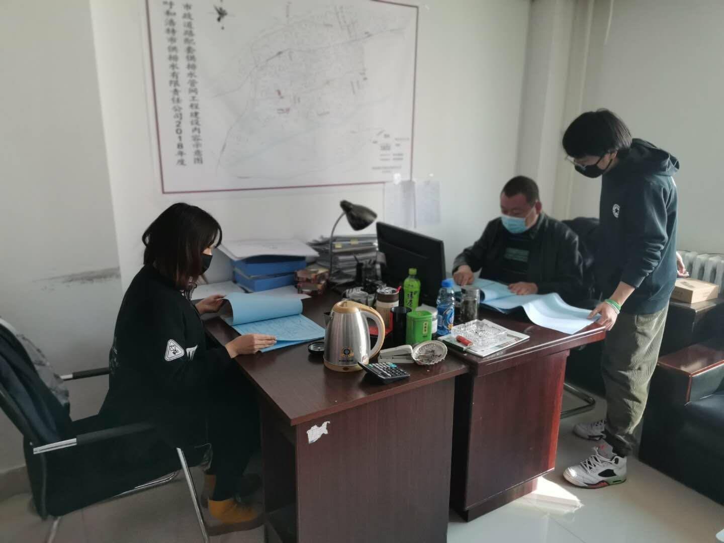 3月23日,管网改造分公司工作人员整理下一步准备验收的消火栓、消防水鹤及供排水管网工程竣工验收材料。