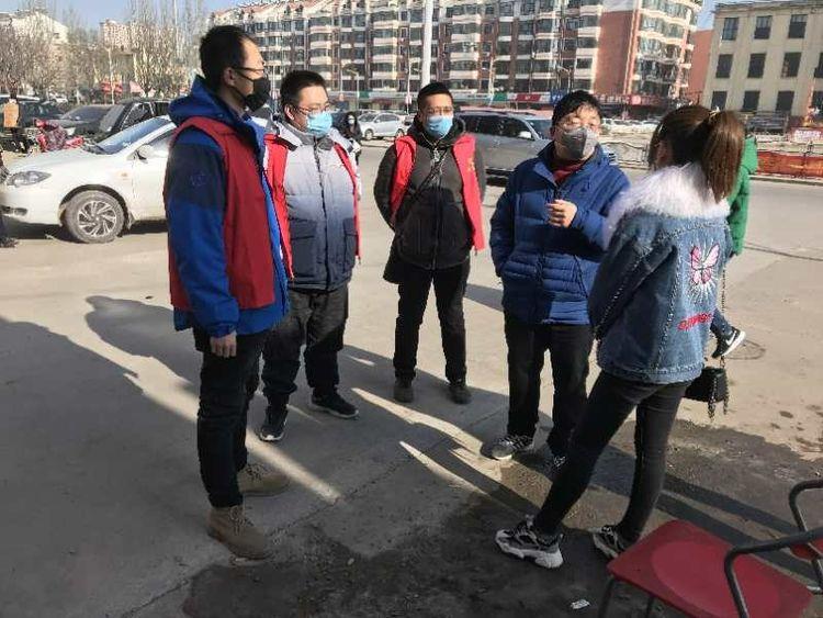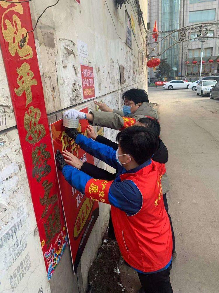 与社区的对接非常顺利,社区所辖几个小区属于老旧小区,没有物业管理,居民以老年人为主,疫情防控工作繁巨,责任重大。虽然戴着口罩,但每个人的脸上都能看出来紧张和凝重,来不及多想,我们立即投入工作,配合社区工作人员,在街道两侧醒目位置张贴疫情防控宣传图;在附近七个小区布置测温点,悬挂防控疫情告示牌。周围的气氛一下子变得更加凝重,但我发现忙碌的工作,到使得队员们的紧张舒缓了许多。
