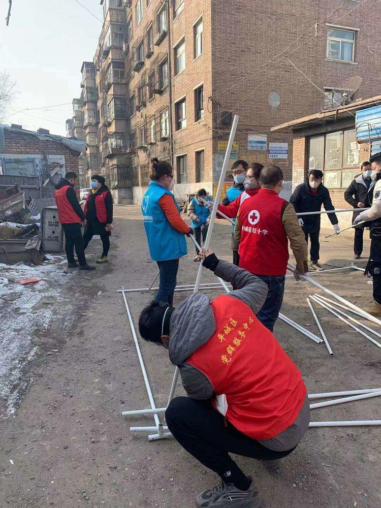 今天,市里的大象志愿者团队也参与到防控疫情工作中了,大家一起为老旧无物业小区搭建帐篷、布控测温点。因为是元宵节,为防止市民走亲串友、扩散疫情,队员们都放弃了与家人团聚的机会在云汽小区值守,认真排查登记进出小区人员,临近傍晚,队员们轮替着吃了口饭,又都匆匆赶回了岗位。凌晨12点接到解除防控的通知,看着身后的万家灯火,走在空无一人的大街上,不由得为自己的付出感到骄傲。