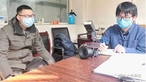 媒体记者采访沙坪坝水厂生产班组组长满龙(左)