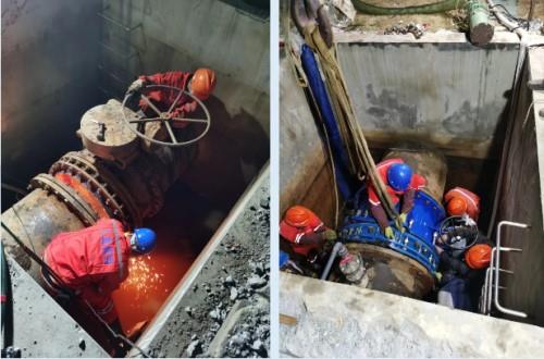 清水管线阀门更换工程第一轮施工于3月18日至3月19日凌晨5时,历时7个小时,完成DN1600、F101、F102三只供水管道老化阀门的更换和安装;第二轮施工于3月20日10时至15时,历时5个小时,完成F103、F104两只供水管道老化阀门的更换和安装。共更换一套DN1600阀门、四套DN1000阀门。