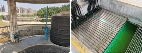 ▲对污水厂出水进行紫外线和次氯酸钠“双保险”消毒