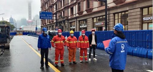 由于工程地处上海百年历史最繁华的商业步行街,工期紧、任务重,疫情当前,文明施工要求高。对此,城建水务防疫、建设“两手抓”,安全、进度“两不误”,卯足干劲全力推进项目建设。