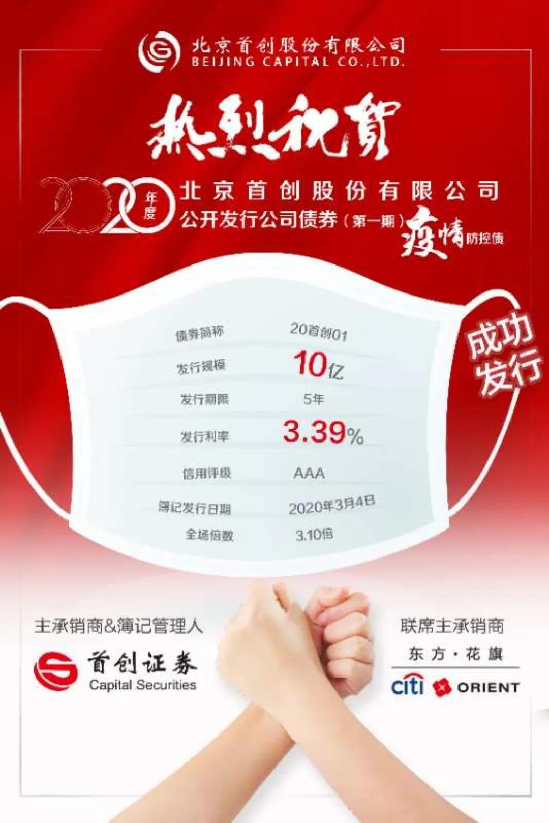 国家精准支持:首创股份精确布局 ——成功发行“疫情防控债”10亿元