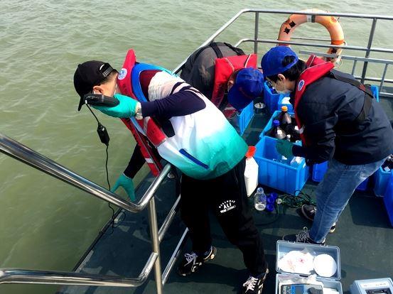 此次采样工作量大,样品多,路线长,采样人员们提前准备好样品瓶于当天上午8点从码头出发,严格按照疫情防控规范要求,全程佩戴口罩,做好自身防护,历时8个多小时完成全部采样任务,并现场对浊度、溶解氧等项目进行检测。后续,该中心将依据《地表水环境质量标准》GB3838-2002检测标准对本次采集样品进行甲苯等化学物质残留,重金属及氨氮、总磷、总氮等109项指标的检测分析。