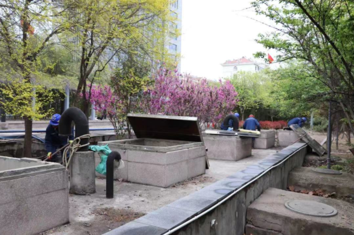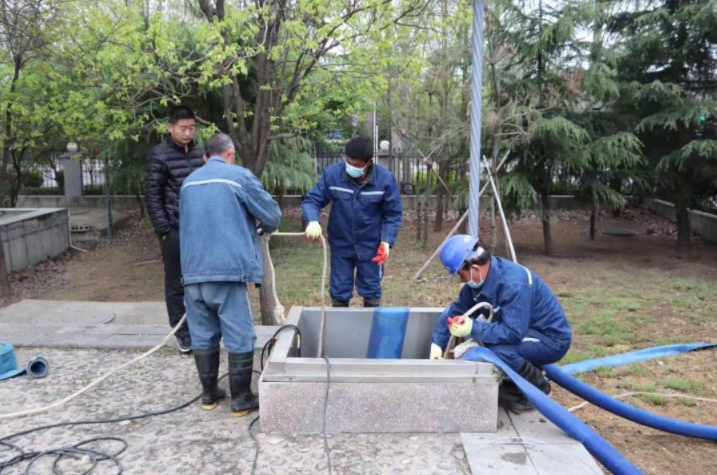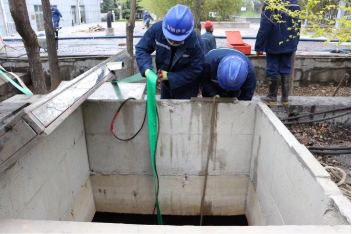 作业前,工作人员制订了全面的清洗方案,备齐清洗专用设备及工具,搭设临时照明线路、水泵启动控制线路及3台排水泵,开启两座清水池4处检修口及通气孔向池内换气。
