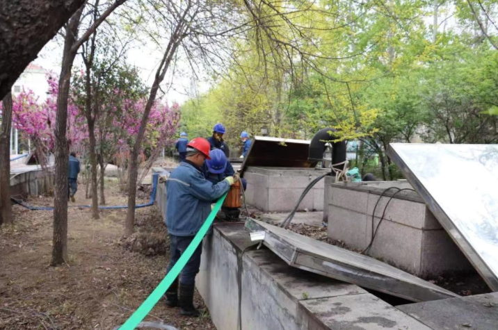 山东省泗水县自来水公司 为提升城市供水质量保障饮用水安全对2万吨水厂清水池进行清洗消毒作业