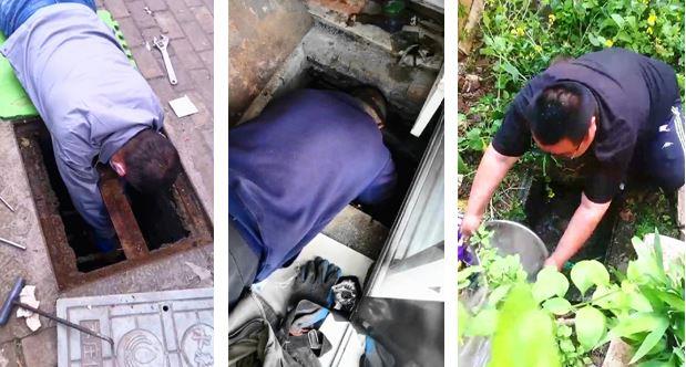 经常徒手作业和带水作业是他们的工作状态,有些表井因路面施工被石屑掩埋,为了避免使用工具清理对水表设施造成损坏,他们就徒手一点一点向外清理;有的水表阀门锈蚀无法停水,他们就带水作业,用工具卸下水表的一霎那,自来水喷溅了一头一脸;有时天黑了,遇到紧急情况,他们就使用手机照明或将照明灯戴在头上进行维修;还有些表井被污水灌入,他们将手探入污水中处理,用盆一盆一盆地向外舀水。