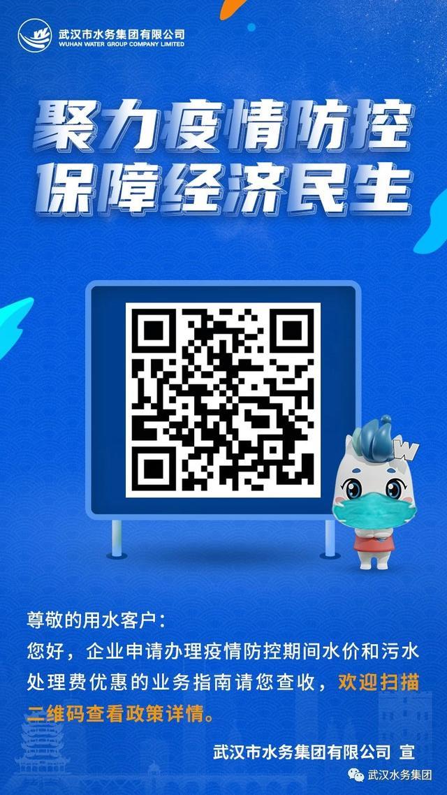 为支持企业抗击疫情,共度难关,武汉市水务集团积极落实市政府相关部署,迅速对水价优惠及污水处理费停征政策进行落实。