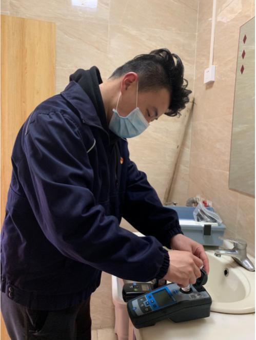 4月16日中午正值午餐时间,长供公司又接到湖北省工业建设集团安装工程有限公司的求助工单,用户反应水呈现浑浊状、且有颜色。公司维修人员放下餐盘迅速赶赴现场,查看现场情况后,首先对公司大门水龙头进行水质检测,检测结果正常,继而检测楼上卫生间水质,发现浊度偏高,随即开水龙头冲放几分钟后,再次检测,放水后水质正常。长供公司维修人员将排查和监测结果告诉用户,建议用户自行检查内部管道,并表示随时为用户解除疑惑、配合用户维修提供后续服务。