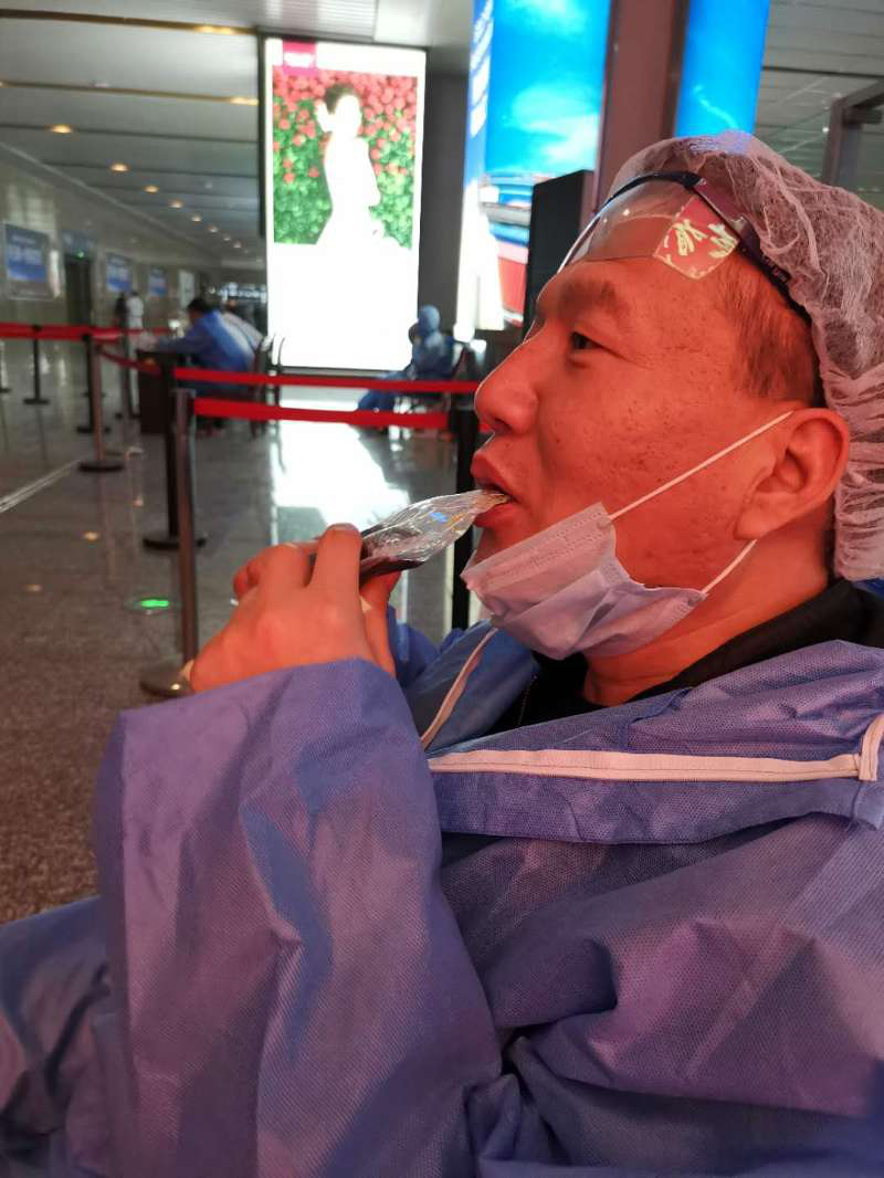 21日凌晨4点30分,高铁站口,李宝志、鲁永仁、吴坤泽、王小河、张海泽、闫路等6名防疫队员已穿好防护服、佩戴好护目镜和防护口罩,准备就绪。