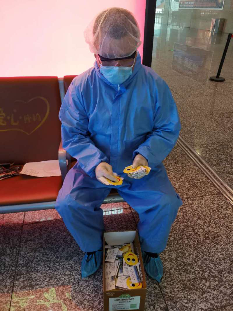 21日上午10:45分,防疫队员们已到900多张卡;一班下来,一个班组10人可以收3000多张卡。“我们这不分高峰,不停有火车进站,一天进站火车最高接近70班次。”吴坤泽说。这期间,防疫队员们没有休息室,只有几把椅子可以轮换休息。
