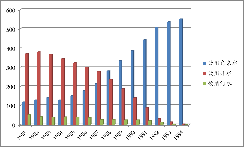 1981~1994年上海市农村饮水人口数量图(单位:万人)