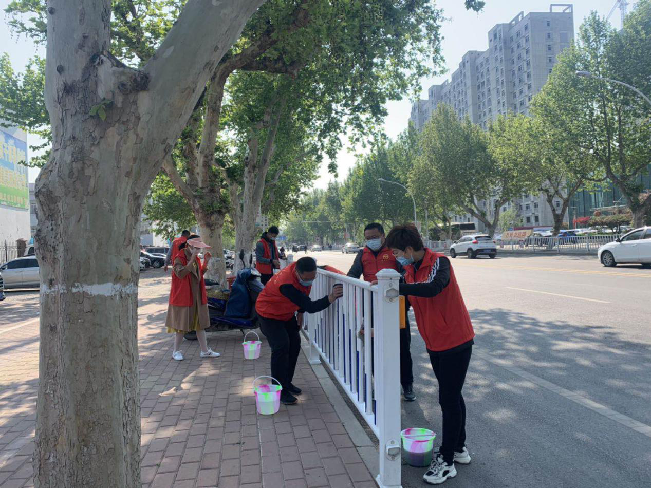 活动现场,志愿者们拿着抹布、提着水桶,弯腰曲背、两手并用,有的冲洗、有的擦拭、有的取水,一丝不苟地擦洗着佛山街道路两侧的防护栏,经过两个多小时的紧张劳动,把1000余米的护栏擦洗得明明亮亮、干干净净。