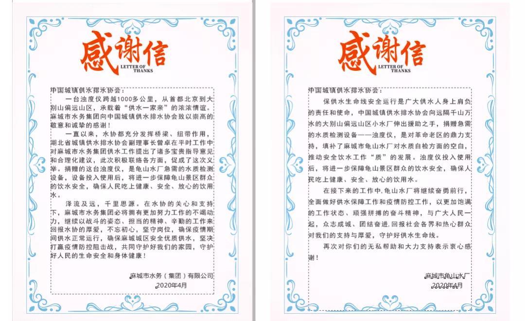 捐赠的这两套化验设备,是龟山水厂急需的水质检测设备,设备投入使用后,将进一步保障龟山景区群众的饮水安全,确保人民吃上健康、安全、放心的饮用水。泽流及远,千里思源。在水协的关心和支持下,麻城市水务集团将以更加饱满的工作状态,全面做好供水保障工作。