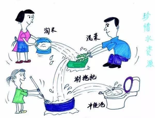 2.淘米水可以用来洗碗筷,去油又节水;淘米水可以用来浇花,节水的同时又滋养花朵。