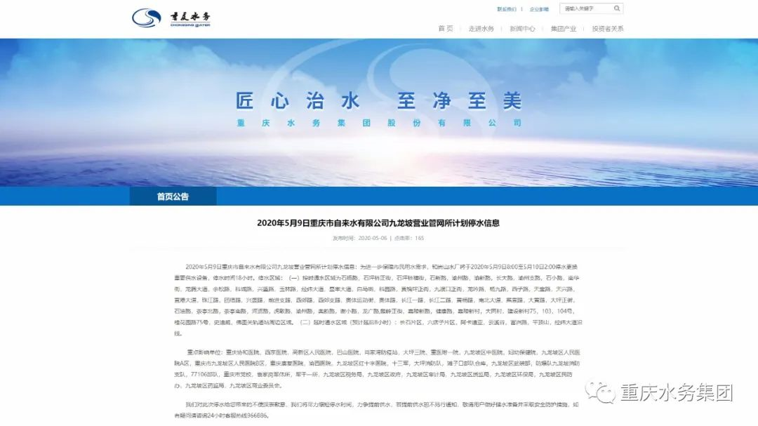 市自来水公司专门制定宣传舆情工作方案,提早做好市民用户的宣传提醒,第一时间报告市、区两级政府,联系10余家市级主流媒体(报纸、电台、电视、网络)并通过公司自媒体(官网、微信公众号等)同步发布停水消息,还深入重点单位、医疗机构、院校、街道社区等张贴停水通知4000余份,广而告知和精准推送“双管齐下”, 充分提醒相关区域居民用户有所准备并按需储水。