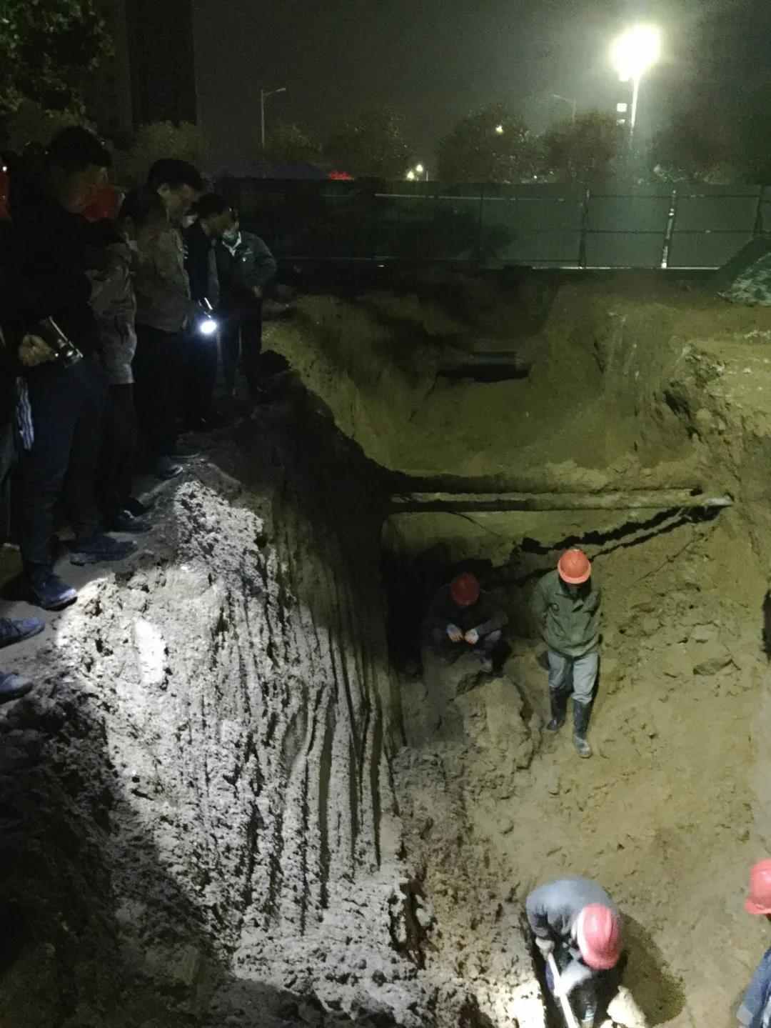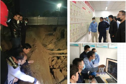 故障发生后,公司党委副书记、总经理罗中玉,党委委员、副总经理谭云飞等第一时间赶赴现场,踩着泥泞的道路查看情况,并参与到指挥抢修作业中。当晚12点,经过长达8小时的排查和现场分析研判,终于准确查找到此次故障断点。公司领导立即组织初步修复,对新区厂三路进线进行打压测试。在紧张、艰难的奋战后,次日凌晨4点,抢修工作终于完成,全厂设备恢复正常运行。