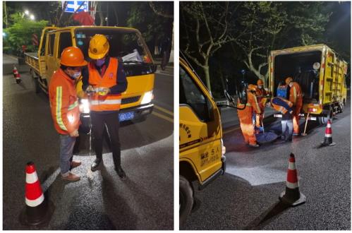 近期建福街路面发现沉降,排水管网队伍第一时间赶往现场并组织抢修班组进场,经检查后得出建福街污水管道已严重下沉断裂,为确保道路不进一步塌陷及确保车辆行人通行安全,白天,“橙医生”们对道路塌陷位置进行围护,并协调交警对道路进行交改施工,同步联系各管线单位现场踏勘。