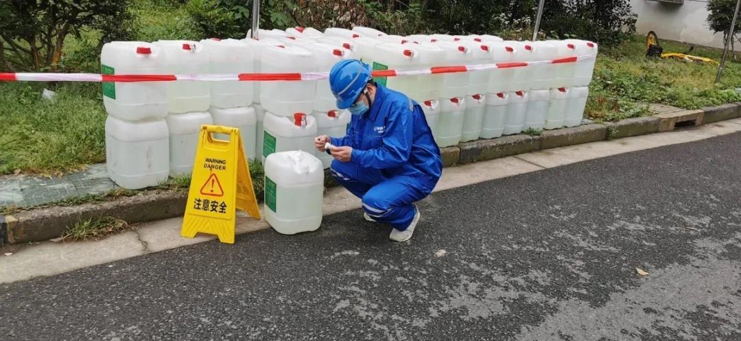 规范清洗作业,确保安全有序在加强作业人员管理的同时,作业现场也不放过任何细节。每批次水箱清洗消毒剂到达现场后,都被集中堆放、设置围栏警示标志,并按规范对消毒剂浓度进行检测,确保药剂的安全性。在清洗过程中,操作人员严格按照公司作业规范流程清洗,整个过程中,保持通讯通畅,以此确保一旦发现问题,可在第一时间进行处理。清洗完成后,管理人员必须对每个水箱逐个进行余氯、浑浊度两项指标检测,指标合格后才可通水,并在楼宇门洞前张贴《水质预检告示单》告知居民,排摸居民用水情况,在得到居民满意答复后才安排人员撤出现场。