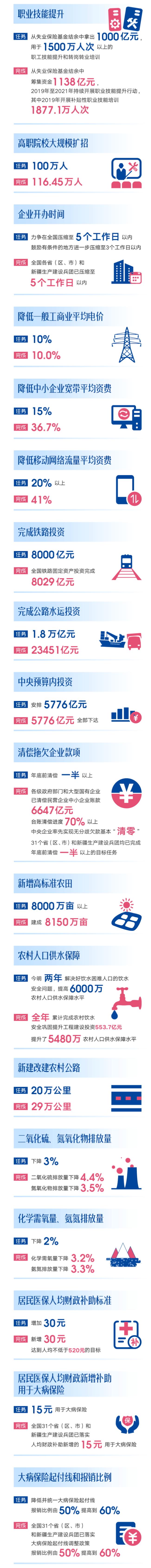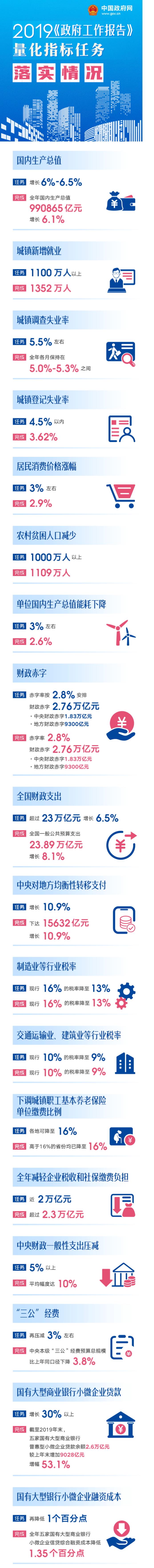 国务院公布2019年《政府工作报告》量化指标任务落实情况