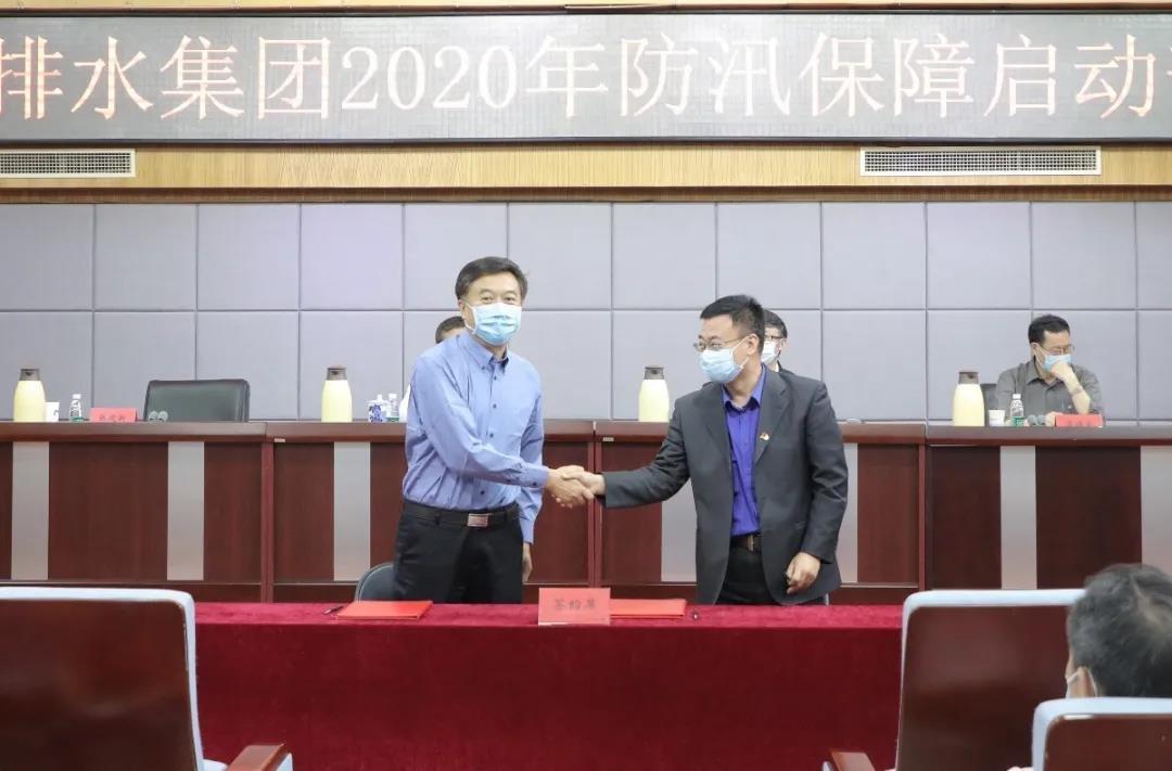 集团总经理张建新代表集团与防汛保障相关单位负责人现场签订了2020年防汛安全责任书,进一步明确防汛责任。