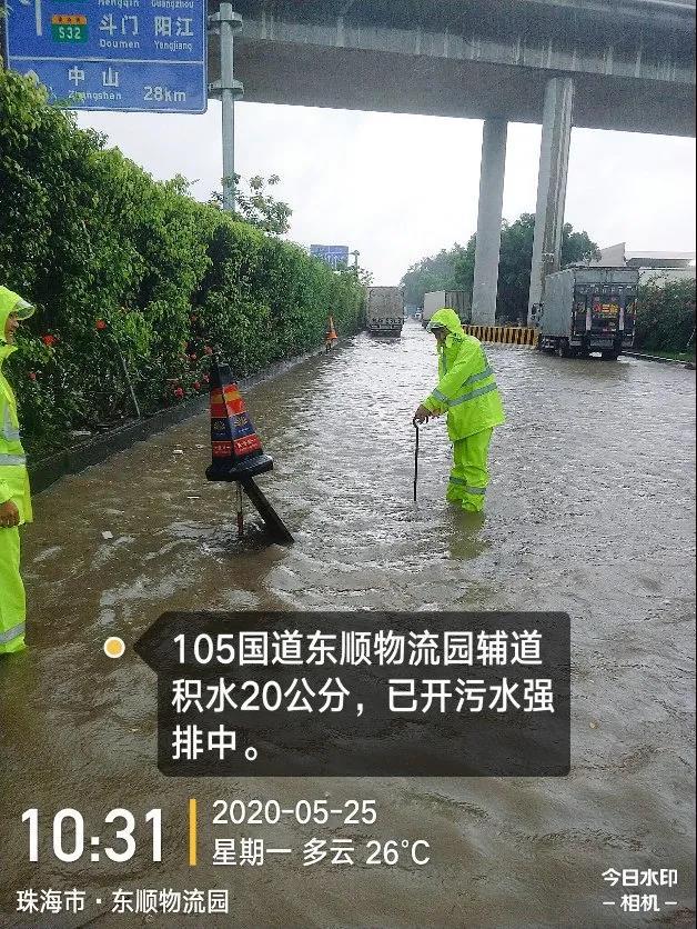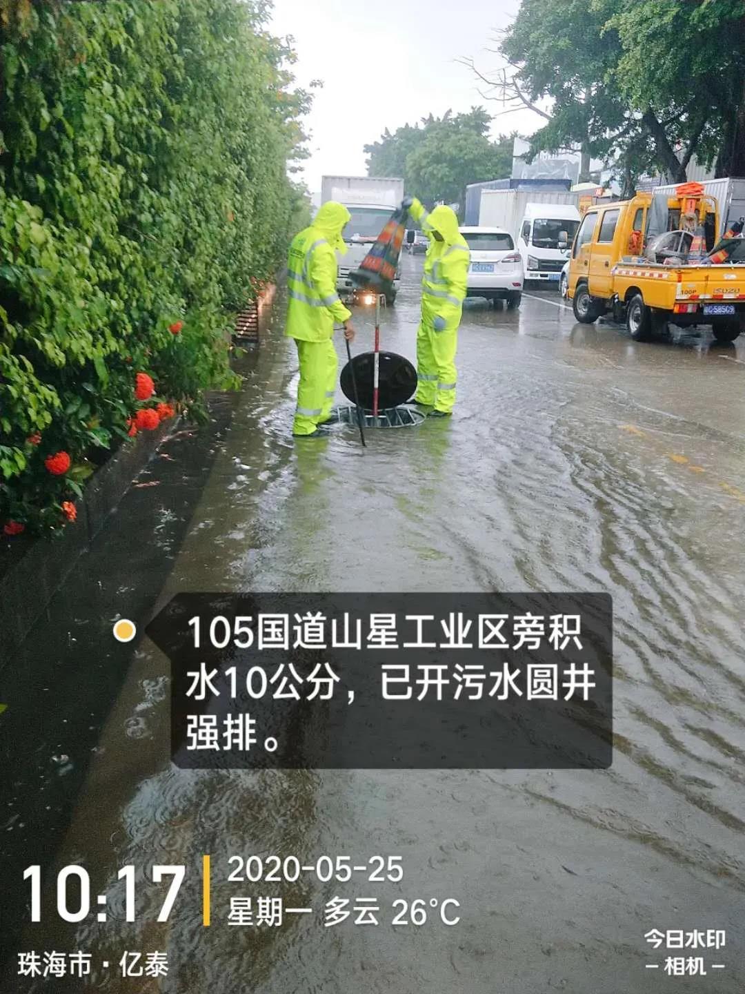 “接到省应急管理厅的预防暴雨提醒之后,我们立即启动了24小时备勤工作机制,从24日晚7时许就出动了人员和设备前往各个水浸点值守待命,今天开始出现强降雨后,我们全员出动抢险排涝。”珠海水控集团管网公司运维部经理张琦介绍说。