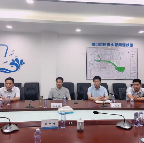 5月22日上午,淮阳区住建局纪检书记苑乃峰、自来水公司总经理付汝亮带领淮阳区自来水公司全体班子成员及所有中层管理人员20余人,莅临周口银龙水务有限公司考察观摩。周口银龙水务有限公司董事长张尚政、党总支书记、总经理郁志强、常务副总经理张建华及其他领导陪同调研、座谈。