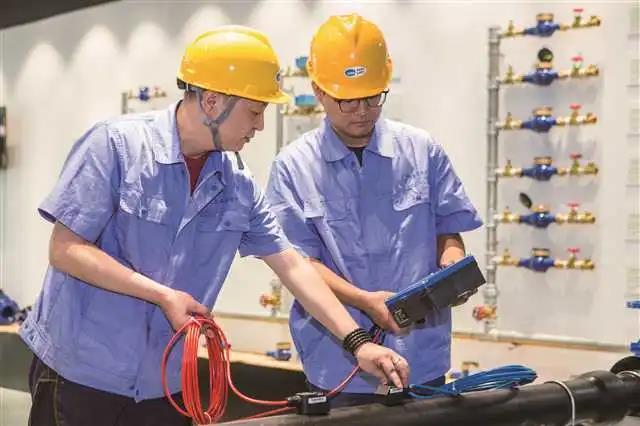 重庆市水务行业职业技能培训中心教师指导学员使用流量监测仪