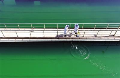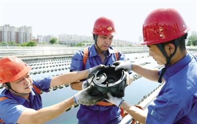 6月3日14点30分,柿园水厂,骄阳似火,太阳炙烤着皮肤晒得生疼,此时地面温度高达64.5℃,柿园水厂厂长娄宁带领几名员工正趴在滚烫的沉淀池边修理排泥桁架,在连续高负荷运转之后,排泥桁架出现故障。为了保证安全生产供应,郑州供水人不顾高温,紧急抢修。据了解,柿园水厂设计日供水32万立方米,6月2日日供水量已高达37万立方米,水厂已超负荷运转。