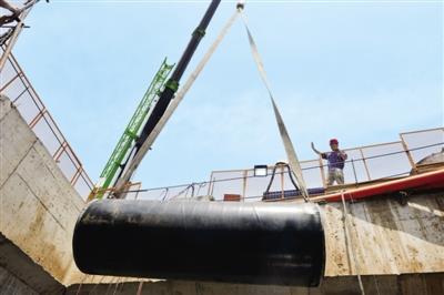 夏季是用水高峰,6月2日郑州供水日供水量已超过140万立方。6月3日,郑州最高气温42.8℃,用水量再创今年新高。为确保安全用水,郑州供水人不畏高温、各司其职、坚守岗位,用自己的汗水守护城市生命线。6月2日上午10点半,郑州市开启“烧烤模式”,在金柏路和杜英街一工地,精瘦的王洪杰跳进3米多深的基坑,从管道和基坑内爬上爬下,一点一点指挥吊车把直径1.2米、长6米的铸铁管像“接竹竿”一样,一节一节地接起来。
