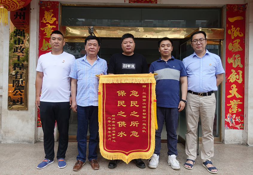 6月9日,河南郑州自来水三强公司(以下简称三强公司)陆续迎来5位用户,他们冒雨送来5面锦旗,向三强公司各项目部克服困难、高效施工、贴心服务表示了诚挚的谢意。