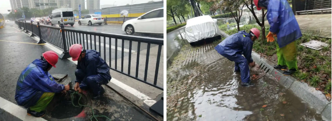 针对此次强降雨雨量大、雨势猛、雨情间断性强的特点,公司各防汛抢险队全员第一时间奔赴预处位置,巡查片区内道路积水情况,及时对积水点进行疏通排涝,确保全市人民出行安全。截止目前,公司共计出动防汛处置人员193人次,出动巡视车、疏通车、吸污车等应急车辆61辆次,对市政道路及住宅小区积水点进行全面排查及疏通,处置积水点53处。